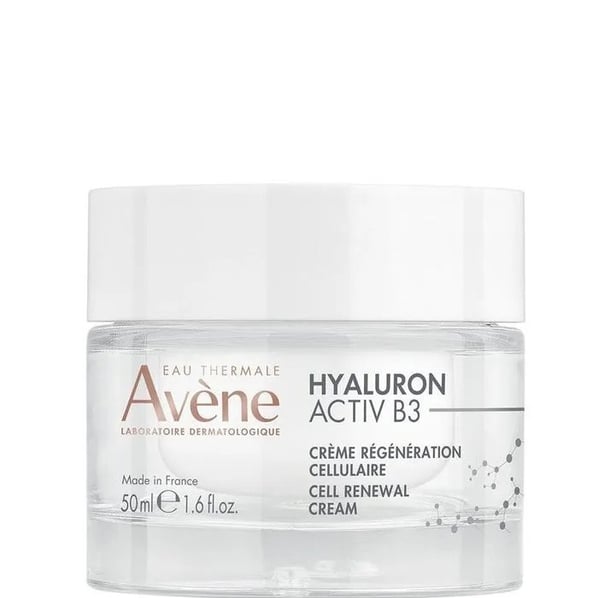 Avène Hyaluron Activ B3 Cell Renewal Cream е регенериращ крем за лице, който се бори срещу стареенето на кожата и бръчките. Формулата съдържа две активни съставки с анти-ейдж ефект - Ниацинамид (6%), наричан още витамин В3, който стимулира клетките и удължава дълголетието им за трайно регенериране, чиста хиалуронова киселина (0,2%), с високо и ниско молекулно тегло, с естествен произход, която хидратира, изпълва и изглажда кожата. Подходящ за всеки тип кожа, дори чувствителна. Авен Хиалурон Актив Б3 Регенериращ крем за лице съдържа 92% съставки от естествен произход. Кадифена текстура с нежен аромат. Подходяща основа за грим.