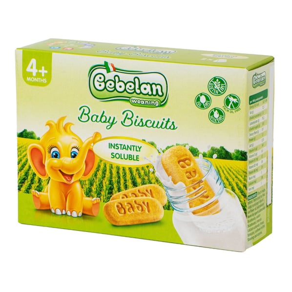 Бебешки бишкоти от Бебелан, без съдържание на глутен, подходящи за деца над 4 месеца. Те се разтварят много бързо във всяка течност. Обогатени с 5 витамина, калций и желязо, те са едновременно вкусни и хранителни. Не съдържат глутен, мляко, яйца, палмова мазнина. Може да се консумират като междинна закуска или десерт при захранване на бебето.