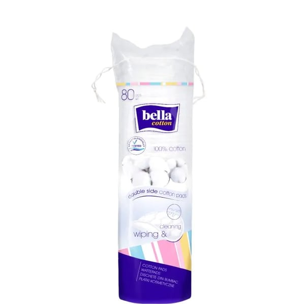 Bella Cotton Pads представляват козметични тампони, които за произведени са от 100% чист памук - деликатен и безопасен за всяка кожа. Белла Козметични тампони за почистване на грим са специално създадени и за най-взискателните жени - изключително плътни, но в същото време много деликатни, нежни и меки. Имат двустранна структура и осигуряват прецизна и внимателна грижа за кожата. Гладката им страна е идеална за козметично приложение, подходяща за почистване на очите и чувствителните зони. Релефната им страна е идеална за почистване на кожата, подходяща за дълбоко почистване. Тампоните са със затворен ръб по периферията предотвратяващ разнищване и оставяне на власинки. Дерматологично тествани. Подходящи за ежедневна употреба от цялото семейство.
