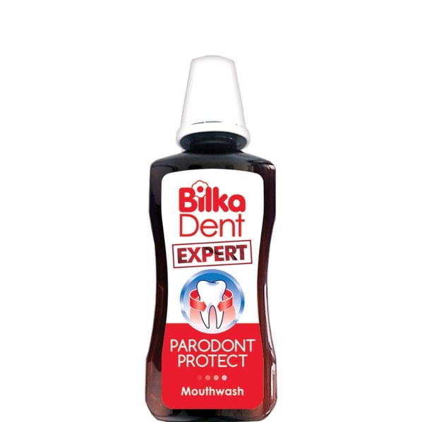 BilkaDent Expert Parodont Protect Mouthwash е вода за уста, предназначена специално за защита от пародонтит. Билка Дент Вода за уста Пародонт Протект почиства и най-труднодостъпните места, до които четката за зъби не може да достигне и премахва голяма част от бактериите в устната кухина, които са причинители на пародонтоза, лош дъх и проблеми с венците. Водата за уста на Билка спомага за предотвратяване образуването на кариеси и редуцира плаката. Съдържа комбиниран екстракт от лечебни билки - мента, невен, синя жлъчка, жълт кантарион, теснолист жиловляк, лайка, чер оман, зелен чай, листа от дива череша, които заздравяват и стягат подутите и зачервени венци. След използване на водата устната кухина е почистена и защитена и поддържа дъха ви свеж с лек ментов аромат.