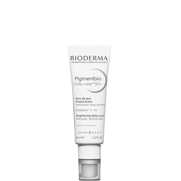 Кремът за хиперпигментирана кожа Пигментбио Дейли от френската марка Биодерма има много висока слънцезащита UVA / UVB. Изравнява тена и предпазва кожата. Разработен с технология UMIREVEAL за намаляване на производството на меланин, която подпомага за обновяването на клетките и допринася за елиминирането на съществуващите тъмни петна и изравняването на тена. Формулата е обогатена с витамини C, E и PP, които подпомагат изсветляването и предпазват кожната бариера. Много добра кожна толерантност. Некомедоногенен. Подходяща основа за грим.