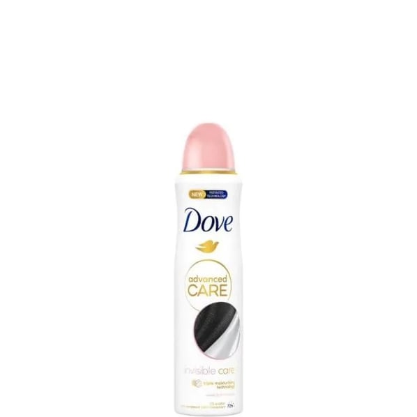 Dove Advanced Care Invisible Care Deo Spray е дезодорант спрей против изпотяване, създаден специално за жени, който осигурява защита от неприятни миризми до 72 часа. Дав Адванс Кеър Инвизибъл Кеър Дезодорант спрей против изпотяване за жени е обогатен с подхранващи, хидратиращи съставки на растителна основа, които правят кожата под мишниците по-мека и нежна. Формулата без алкохол, съдържа 1/4 овлажняващ крем и витамин E и се грижи деликатно за кожата на подмишниците. Дезодорантът не оставя следи и е с прекрасен ненатрапчив аромат. Подходящ за ежедневна употреба. Не съдържа алкохол и парабени.