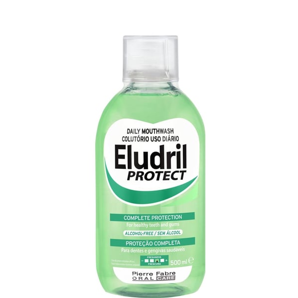 Вода за уста предназначена за цялостна комплексна защита на устната кухина. Елудрил Протект се бори срещу натрупването и задържането на бактерии върху зъбите, които са отговорни за образуването на плака и зъбен камък, както и за възпаление на венците. Прониква и защитава най-труднодостъпните места. Съдържа Fluorinol (второ поколение аминофлуорид), който реминерализира емайла и подпомага неговата защита. С ментов вкус за свеж дъх. Не съдържа алкохол.