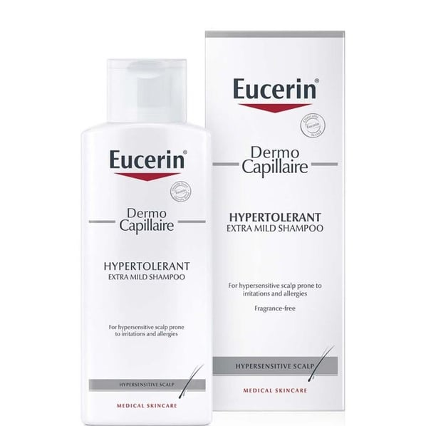 Този продукт на немската марка Юсерин представляваза шампоан, създаден за почистване на хиперчувствителен скалп. Той има изключително лека формула, която осигурява нежно измиване и предпазва скалпа от изсушаване. Успокоява раздразненията дори при хиперчувствителен или проблемен скалп. Този шампоан на Eucerin от серията Dermo Capilliare облекчава сърбежа още след първото измиване.