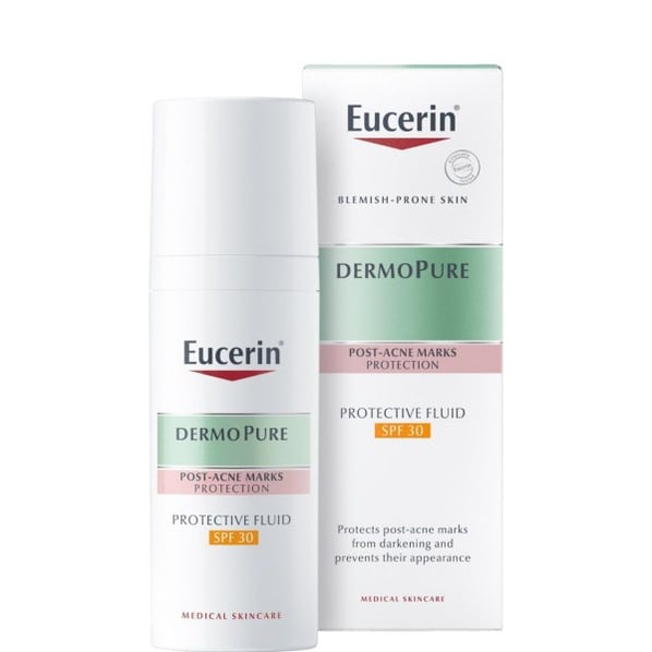 ДермоПюр е матиращ флуид с тройно действие от Юсерин, подходящ за кожа, склонна към акне и потъмняване на петната от акне. Редуцира съществуващите несъвършенства и предпазва кожата от появата на нови. С SPF30 UVA/B филтри, които защитават от потъмняване на петната (постинфламаторни хиперпигментации). Включва антибактериален декандиол срещу образуване на пъпки и Licochalcone за облекчаване на кожните раздразнения. Разработен с помощта на себум-регулиращата технология с дълготрайно усещане за сухота и матиран завършек. Некомедогенен, без омазняващ ефект.