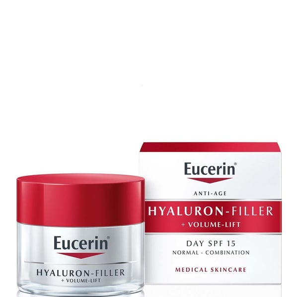 Подходящ за нормална и смесена кожа, дневният крем Юсерин Hyaluron-Filler + Volume-lift възстановява обема на кожата. Той действа върху различни слоеве на кожата, за да се справи с факторите, причиняващи увисване на кожата, промяна в лицевия контур и намален обем на кожата. Снабден със SPF 15 и UVA филтър, които защитават кожата от фотостареене. Не съдържа парабени или изкуствени оцветители, има добра поносимост от кожата.