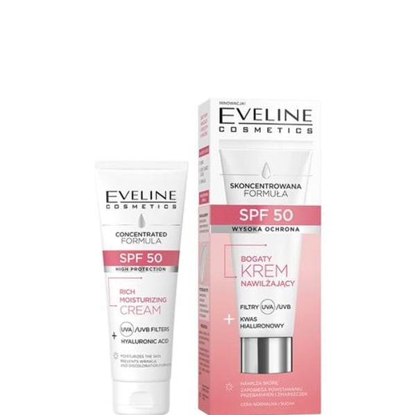 Хидратиращият крем SPF 50 предотвратява въздействието на слънчевата светлина, осигурявайки на кожата цялостна защита срещу вредните външни фактори. Формулата действа против бръчки и ревитализира кожата. Перфектно овлажнява и подхранва. Концентрираната формула с хиалуронова киселина осигурява ежедневна есенциална хидратация и подобрява еластичността на кожата. Съдържанието на фотостабилни филтри осигуряват широка защита срещу UVA и UVB лъчение и фотостареене, причинено от него.
