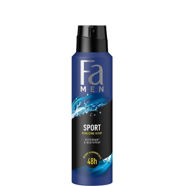 Дезодорантът Фа Спорт е предназначен за активния мъж, който иска да се чувства свеж и уверен през целия ден. Формулата осигурява до 48 часа защита от неприятни миризми и изпотяване, като същевременно поддържа кожата суха и комфортна. Свежият аромат с енергични цитрусови и морски нотки създава усещане за чистота и виталност, независимо дали сте във фитнеса, на работа или в движение. Дълготрайна защита при физическа активност. Освежаващ мъжки аромат. Не оставя следи върху дрехите. Подходящ за ежедневна употреба.