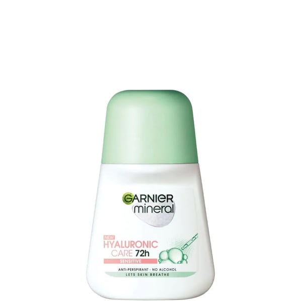 Garnier Mineral Hyaluronic Care Roll-on е дезодорант рол-он за жени, който ефективно предпазва от изпотяване и от поява на неприятни миризми до 72 часа. Подходящ за всеки тип кожа, включително чувствителна. Формулата е обогатена с минералит и хиалуронова киселина от растителен произход. Минералитът перлит има силно абсорбиращо действие. Той абсорбира до 5 пъти повече влага от талка. Хиалуроновата киселина притежава хидратиращи, изглаждащи, противовъзпалителни и тонизиращи свойства. Тя поддържа деликатната кожа на подмишниците мека и еластична. Гарние Минерал Хиалуроник Кеър Дезодорант рол-он преотив изпотяване за жени оставя кожата с приятно усещане през целия ден и ѝ позволява да диша. Без алкохол.