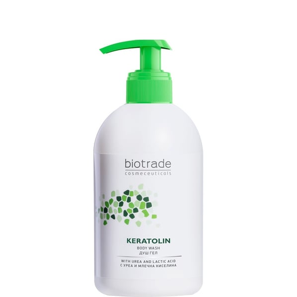 Душ гелът Кератолин на Биотрейд е измиващ продукт за тяло, подходящ за нормална, суха, много суха и лющеща се кожа, както и чувствителна, склонна към алергии. Съдържа 5% уреа с нежно почистващо действие, което възстановява бариерната функция на кожата. Формулата му е без съдържание на сапун, запазва влагата в епидермиса и поддържа естествената еластичност. Продуктът възстановява мекотата и усещането за комфорт на кожата. Подходящ за ежедневна употреба и като съпътстваща грижа за кожа, склонна към атопичен дерматит. За всички възрасти. Без сулфати и парабени.