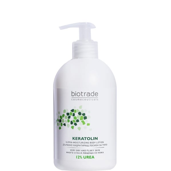 Създаден специално за много суха, опъната и сърбяща кожа, лосионът за тяло с 12% уреа Кератолин от Биотрейд доставя дълготрайна хидратация и засилва защитната бариера на кожата. С обогатена с 12% уреа формула, хидратиращият лосион увеличава водното съдържание в епидермиса, излющва излишните натрупвания рогови клетки и предпазва кожата от вредните влияния на околната среда. Нежният хидратиращ лосион спомага за регулирането на нормалните нива на влага в кожата и доставя приятно усещане за мекота и комфорт. Не съдържа парабени и е подходящ за всекидневна употреба от деца и възрастни.