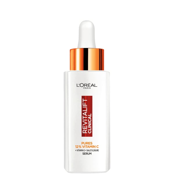 Loreal Revitalift Clinical Vitamin C Serum е висококачествен козметичен продукт, осигуряващ благотворна грижа на кожата на лицето. Този иновативен продукт е специално разработен за по-младите дами от поколението на милениалите. Лореал Ревиталифт Клиникъл Витамин Ц Серум за лице с витамин С се отличава със своята специална формула с 12% витамин C в комбинация с витамин Е и салицилова киселина. Включеният витамин Ц е във висока концентрация, с отлична чистота и е под най-препоръчваната от дерматолозите форма - Л-аскорбинова киселина. Той изравнява тена на лицето, намалява тъмните петна, осигурява мощен детоксициращ и антиоксидантен ефект и забавя процесите на стареене. В същото време серумът заглажда фините линии, намалява видимостта на порите и изгажда текстурата на кожата благодарение на другите две активни съставки - 0,45% салицилова киселина и 0,25% витамин Е. Кожата става по-гладка и по-сияйна. Допълнително включените 2 вида хиалуронова киселина и глицерин осигуряват дълбока хидратация и подпомагат в борбата срещу стареенето. С моментално заглаждащ и омекотяващ ефект. Продуктът е с подходящо pH за съхраняване стабилността на витамин C. Продуктът е подходящ за жени с всеки фототип кожа. С приятна текстура, която попива бързо и не оставя мазни следи. За всеки тип кожа.
