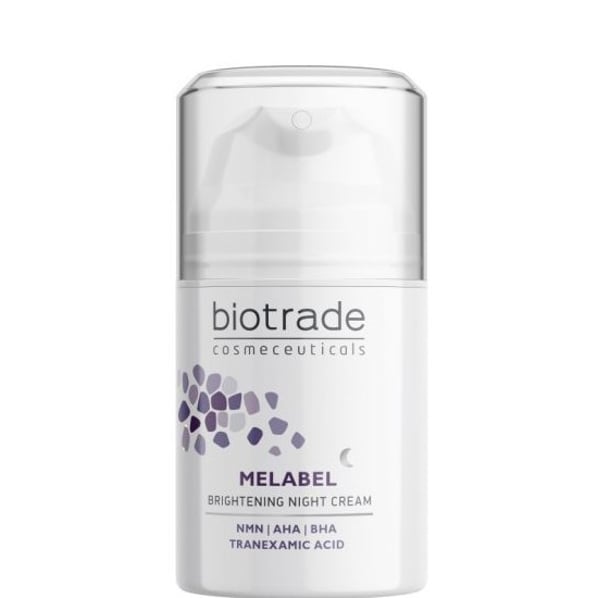 Изсветляващият нощен крем Мелабел от Биотрейд намалява тъмните петна, блокира свръхпроизводството на меланин, изравнява и подобрява общия тен. Бори се с признаците на преждевременно стареене и може да се употребява при: наличието на лунички, старчески петна, петна от акне, различни видове пигментации, петна от бременност, хормонални петна, както и петна от слънцето. Подходящ за всеки тип кожа, страдаща от хиперпигментации.