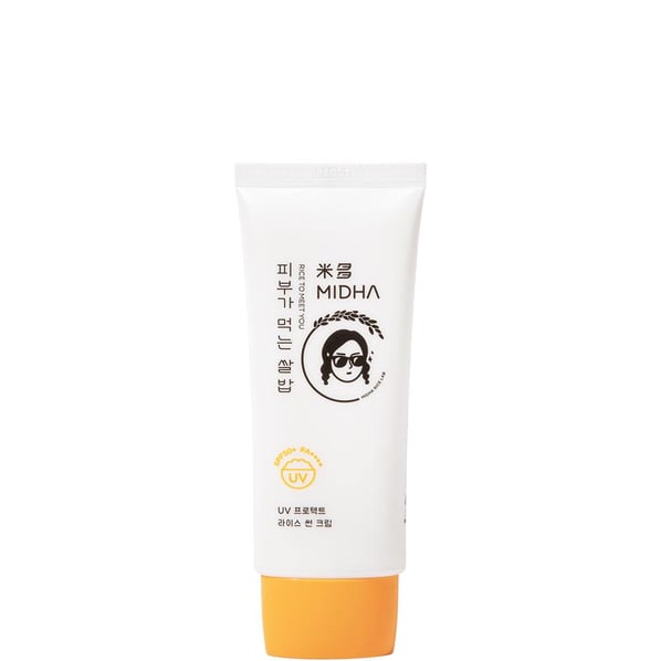 За защита от слънцето с висок UV фактор, кремът за лице от корейската марка Midha има тройно действие - слънцезащита, осветляване на тена и хидратация на кожата. Комбинира свойствата на екстракт от оризови съставки, органичен чай, овесени семена и растения, които овлажняват, омекотяват и успокояват раздразнената от слънцето кожа. С немазна текстура. Подходящ за вегани.