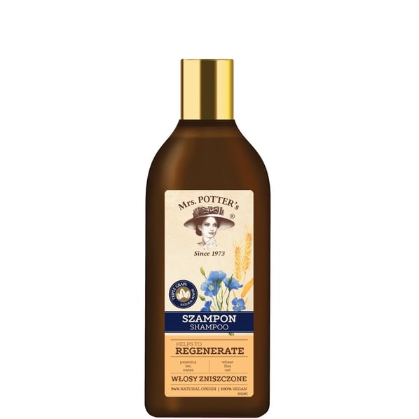 Шампоанът за увредена коса Mrs. Potters Triple Grain улеснява разресването, придава блясък и гладкост на косата. Съдържащите се протеини намаляват накъсването на косата, предпазват я от външни увреждания, повишават еластичността ѝ и я подхранват.