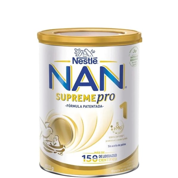 Nestle NAN Supreme pro 1 Мляко на прах за кърмачета e висококачествено мляко на прах, разработено специално за кърмачета на възраст от първия ден до 6 месеца. Обогатено е с хранителни вещества и елементи, съответстващи на нуждите на детския организъм за правилното развитие и израстване на бебето. Нестле НАН Сюприм про 1 Мляко на прах за кърмачета съдържа частично хидролизиран суроватъчен протеин от краве мляко и съдейства за балансирано хранене. Предлага се в удобна метална кутия с отделно място за поставяне на лъжичка и мини прозорче, през което може да проследявате оставащото количество.