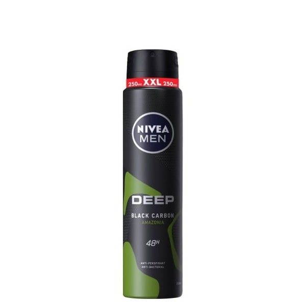 Nivea Men Deep Amazonia Anti-Perspirant Deodorant Spray е дезодорант против изпотяване за мъже, предназначен за ежедневна употреба, който предпазва от изпотяване и неприятни миризми. Подходящ за всеки тип кожа. Ефективната формула с черен карбон има силно действие срещу бактериите и е съчетана с модерен и мъжествен аромат. Нивеа Мен Дийп Амазония Дезодорант спрей против изпотяване за мъже защитава кожата от изпотяване и бактерии, като същевременно предоставя дълготрайно чувство за свежест. Не оставя следи. Дерматологично тестван продукт.