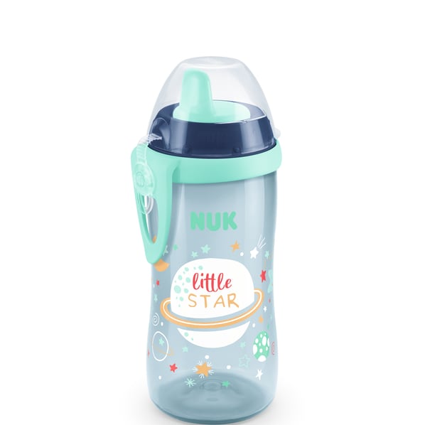 Nuk Kiddy Cup, твърд накрайник, 300мл., неразливаща, възраст 12 + месеца. Благодарение на светещия безопасен за бебето материал, шишето излъчва мека светлина и може лесно да бъде открита и през нощта.Накрайник - синтетичен материал, устойчив на малки зъбки, не съдържа BPA. Вентил за лесно пиене на течността. Практична капачка и клипс за закачане. Веднага след като първите зъби на детето се появят, то иска да ги използва. Накрайникът на тази чаша е съобразен точно с това, да издържа на зъбите. Ергономична форма, подходяща за малките ръчички. Самата чаша е от прозрачен материал, за да се вижда колко е останала от напитката на детето. Много е лесно да се разглоби и почисти. Капачката е закрепена с гъвкава връзка, за да няма опасност от загубването й. може да се почиства в съдомиялна машина. Чашата Kiddy Cup е съвместима с продуктите от серията Nuk First Choice . Може да се използва и с други накрайници от тази серия.