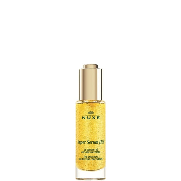 Super Serum 10 на френската козметична марка Нукс носи коригираща сила, благодарение на естествена хиалуронова киселина, обогатена с хиляди микро-топчета фракционирани растителни масла. Универсален продукт за грижа, подходящ за всички типове кожа, стимулира механизмите на младост на кожата против стареене. За изгладена, стегната и сияйна кожа. Съдейства за редукция на бръчките, фините линии и тъмните петна. Патентован ботанически комплекс (FR) с естествени клетки от еделвайс: ботанически биотехнологичен процес, клетъчна култура в лаборатория, се използва за размножаване на естествени клетки от еделвайс от малък фрагмент от растение. Тяхната антиейдж ефективност е предмет на патент. Свежата му и копринена текстура с фини растителни нотки се топи върху кожата. 95% от съставките са от естествен произход. Веган формула без съставки или производни от животински произход.