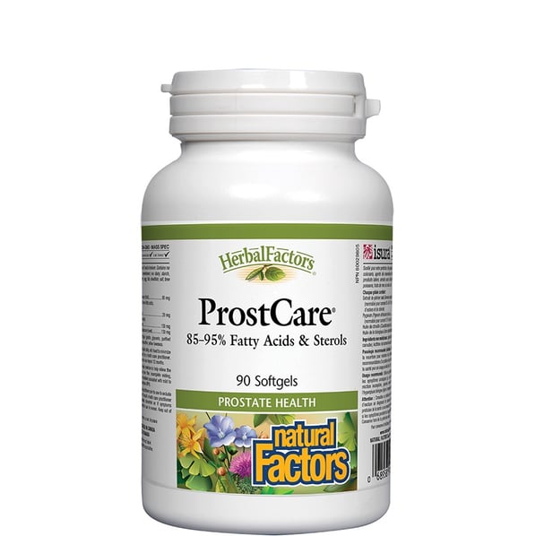 Prostcare от Нейчъръл Факторс срещу проблемите с простата и трудното уриниране при мъжете. Облекчава симптомите като болка при уриниране, изненадващите позиви, както и среднощните, усещането за недостатъчно освобождаване на пикочния мехур, разширената простата. Продуктът съдържа екстракт от пигеум (африканска слива), масло от тиквени семена, семена от ленено масло, сао палмето. Не съдържа: изкуствени оцветители, консерванти, подсладители, млечни продукти, нишесте, захар, пшеница, глутен, мая, соя, царевица, яйца, риба, ракообразни, сол, дървесни ядки, ГМО.