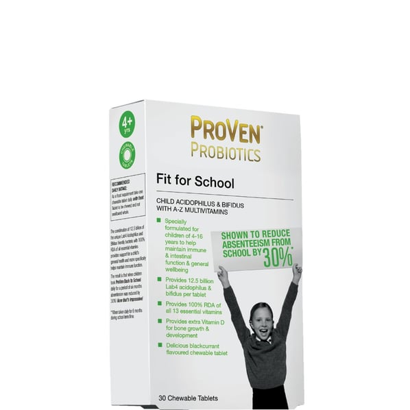 Провен формула за деца над 14-годишна възраст, под формата на дъвчащи таблетки с подсладител, с вкус на ягода. Способства за поддържане на нормалната защитна функция на имунната система и общия тонус и енергия на организма. Комбинира свойствата на Витамините C и D, цинк и селен, които допринасят за нормалната функция на имунната система. Витамин С допринася за нормалното образуване на колаген, за нормалната функция на зъбите. Pro-Ven Probiotics Fit For School не съдържа глутен и млечни продукти. Подходящ за вегетарианци.