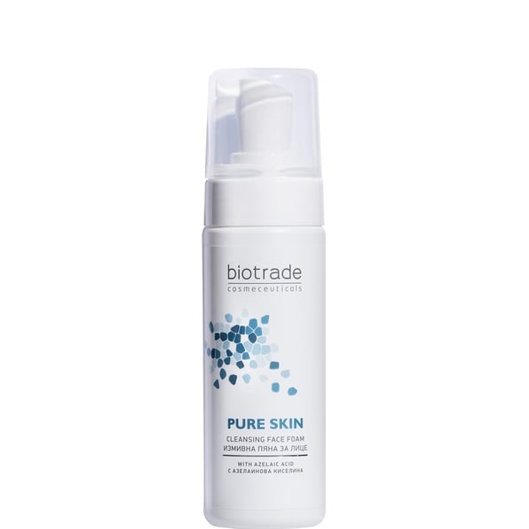 Измиващата пяна Пюр Скин Биотрейд е с нежна основа, която отстранява замърсяванията, стяга и почиства порите, без да изсушава и дразни кожата. Подходяща е за всеки тип кожа, страдаща от разширени пори, черни точки и неравномерен тен. Активни съставки: Azelaic acid - регулира производството на себум, стяга разширените пори, предотвратява появата на комедони и нови пъпки, стимулира регенерацията на кожата, действа противовъзпалително и антиоксидантно; Coco glycoside - биоразградим измиващ комплекс и Glycerin - омекотява, овлажнява и повишава еластичността на кожата, предпазва я от изсушаване и повишава защитната ѝ функция. Продуктът е хипоалергенен, некомедогенен и не съдържа парабени, сулфати и алкохол.