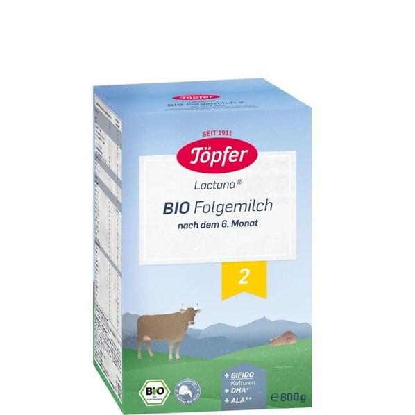 Преходното мляко на Лактана е подходящо да задоволи специфичните хранителни потребности на кърмачета след шестия месец, след прекратяване на кърменето или в случай че адаптивното мляко Lactana Bio 1 не удовлетворява вече хранителните им нужди. Млякото се прилага само, като част от разнообразния хранителен режим. Съдържа 4 вида ценни Бифидобактерии и Докозахексаенова киселина (DHA) и а Алфа-линоленова киселина (Омега-3) (ALA), които подпомагат развитието на зрението, нервните и мозъчните клетки. Съдържа също витамин A за имунната система, както и желязо за когнитивното развитие (съобразно изискванията на закона). Lactana Bio 2 от Тьопфер е произведено в съответствие със стандартите на Европейския Регламент за биологичното производство. Използвано е пълноценно биологично мляко и други съставки от биологичен произход. Предлага се в опаковка от 600 г.