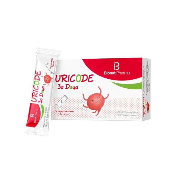 Урикод за деца над 3 години подпомага здравето на пикочните пътища и предпазва от повторни уринарни инфекции. Формулата му съдържа натурални съставки като D-маноза, екстракт от червена боровинка и витамин C - комбинация, която съдейства за елиминиране на бактериите от пикочните пътища и укрепва естествената им защита. Продуктът е подходящ при чести цистити, дискомфорт при уриниране и като профилактика след лечение с антибиотици. Uricode е с приятен вкус и щадящо действие, което го прави подходящ за ежедневна употреба при деца. Без захар, без изкуствени оцветители и аромати.
