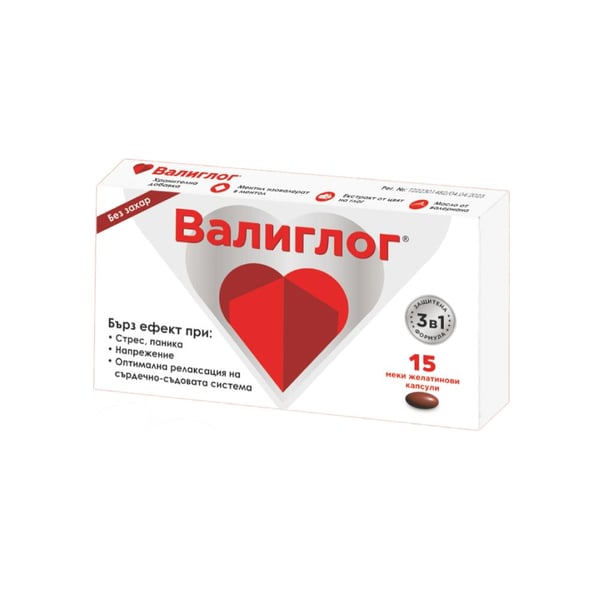 Valiglog е лекаствен продукт без лекарско предписание, който съдържа съставки на растителна основа. С бърз ефект при състояния на стрес, паника и напрежение. Спомага за релаксация на сърдечно-съдовата система, устойчивостта на кръвоносните съдове и стените на капилярите, за поддържане на нормално кръвно налягане и здрав и качествен сън.