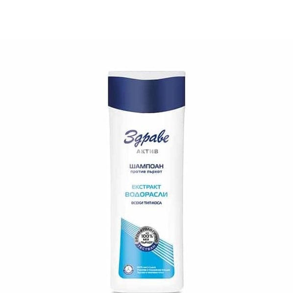 Здраве Актив Шампоан против пърхот за всеки тип коса с екстракт от водорасли е продукт за всеки тип коса, със заздравяващо косъма действие и противопърхотни свойства. Шампоанът прави косата мека, бляскава и силна. Облекчава сърбежа, като редуцира кожните раздразнения по скалпа. Вложеният екстракт от водорасли спомага за заглаждане нарушената структура на косъма. Шампоанът успешно се бори с пърхота, благодарение на ефикасен комплекс от 3 активни съставки - Zinc pyrithione, Alkyl lactate и Panthenol - с широкоспектърно противогъбично действие. Те почистват и укрепват косата, хидратират и освежават кожата на скалпа. Премахват пърхота, който се причинява от гъбички. Успокояват възпаленията и намаляват неприятните симптоми, породени от пърхота. Шампоанът е подходящ за честа употреба. Не съдържа парабени.